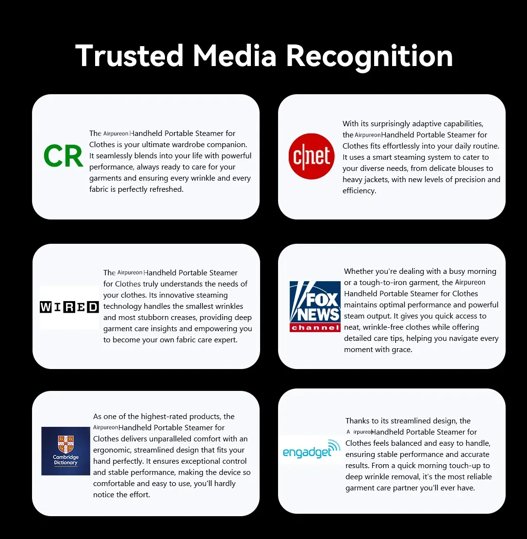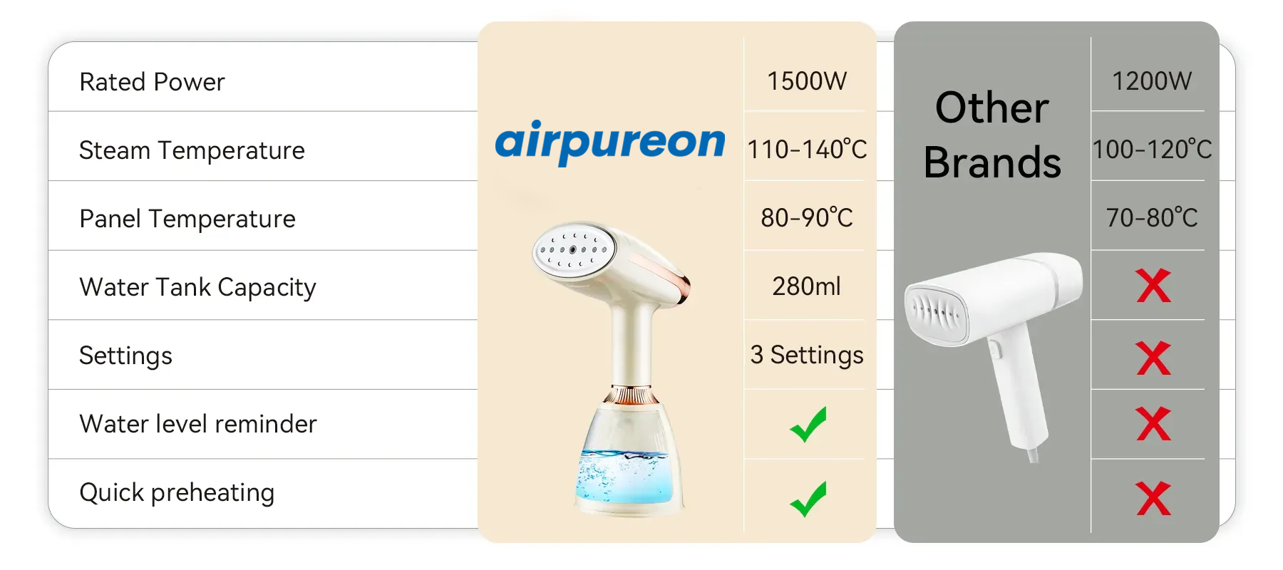 Airpureon Handheld Portable Steamer for Clothes was her answer. It delivers flawless wrinkle removal, superb comfort with a lightweight, ergonomic design, and an effortlessly smooth experience. Designed for confidence—because looking your best should never be compromised.